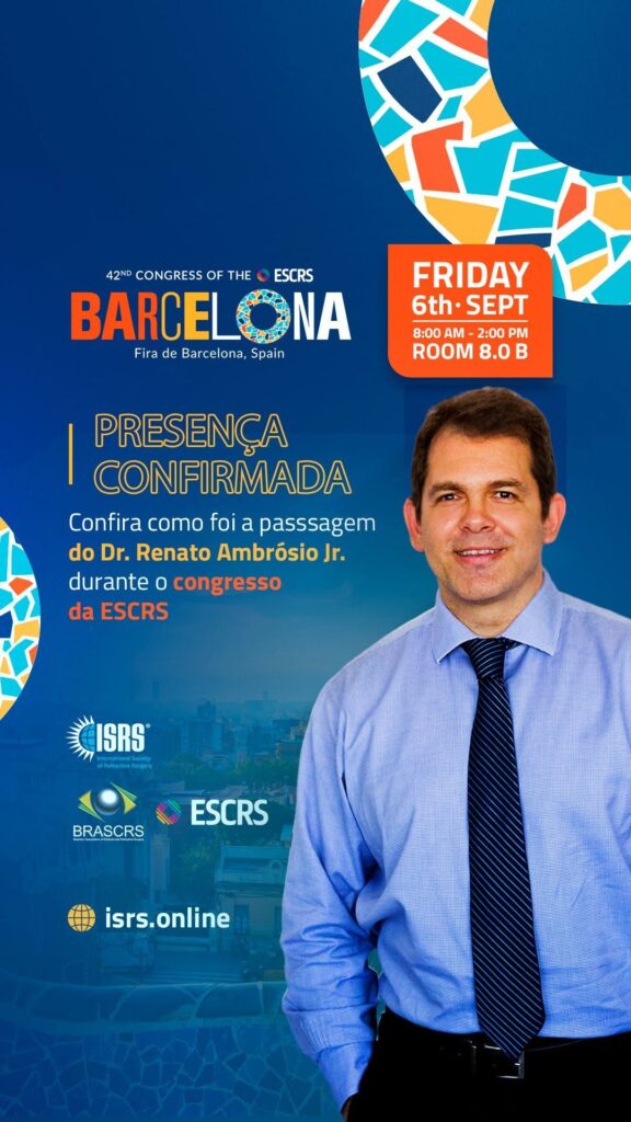 O doutor Renato Ambrósio Júnior marcou presença no 42nd Congress of the ESCRS, em Barcelona, compartilhando seu vasto conhecimento sobre cirurgia refrativa e novas tecnologias. Como um dos principais especialistas da área, ele participou de palestras e discussões que trouxeram insights importantes para o futuro da oftalmologia.